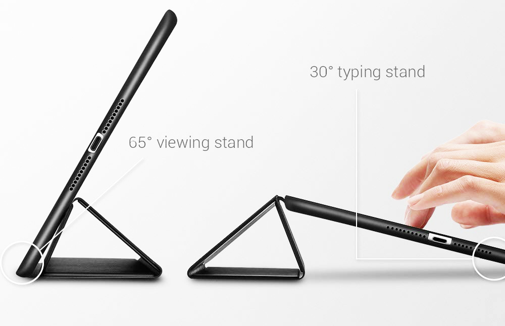 Vine cu un suport de tip stand, format din 3 bucati si ajustabil in mai multe unghiuri, ce favorizeaza vizionarea continutului media si in pozitia landscape.